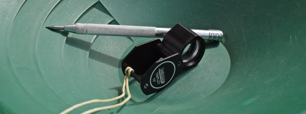 За да може успешно да се определи дали въпросният минерал, на който сте попаднали е злато, ще са нужни три инструмента – златарски леген, качествена лупа и скречър (Фиг. 1.).